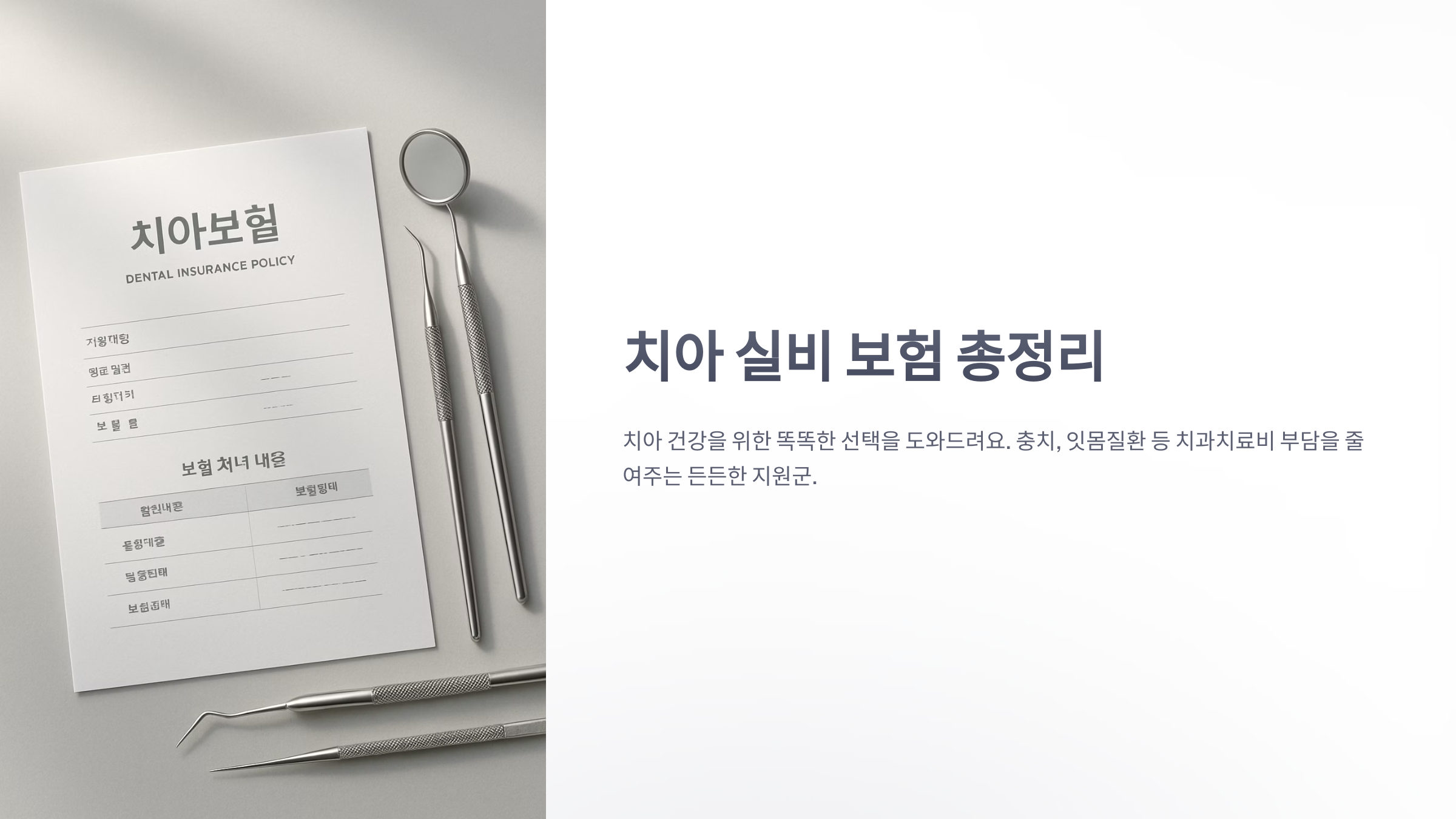 치아 실비 보험은 충치, 잇몸질환 등 치과치료비 부담을 줄여주는 든든한 지원군입니다. 이번 글에서는 치아 실비 보험의 특징부터 가입 시 주의할 점까지 친절하게 안내드릴게요. 읽고 나면 후회 없는 선택이 가능합니다!