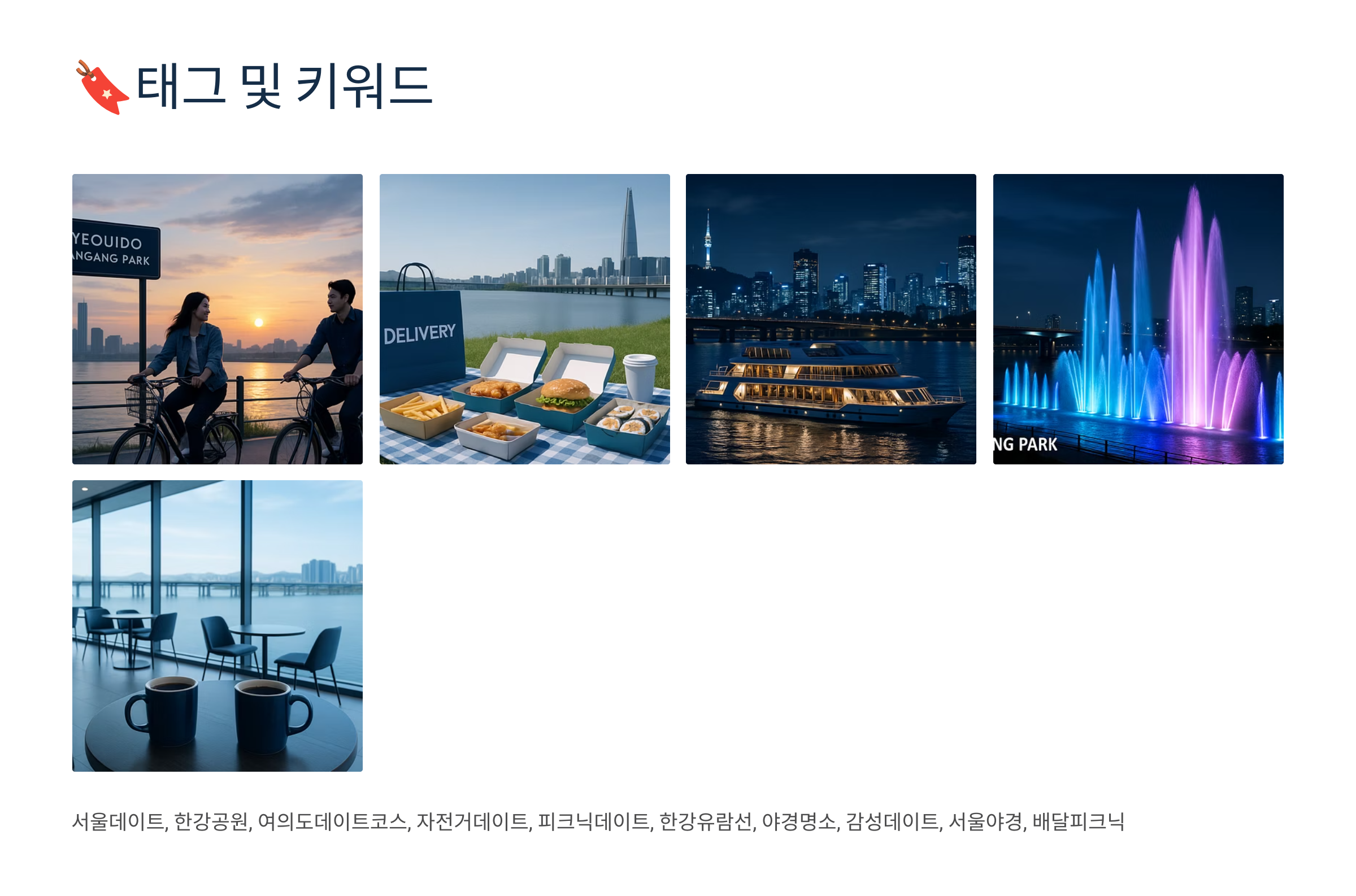 그날, 우리는 자전거를 타고 바람을 맞으며 웃었고, 돗자리에 앉아 치킨을 먹으며 장난을 쳤어요. 해가 지고, 유람선 위에서 함께 본 야경은 오래도록 잊히지 않을 거예요. 이 코스는 꼭 한 번쯤 함께 추억을 쌓고 싶은 사람과 가보길 추천해요.