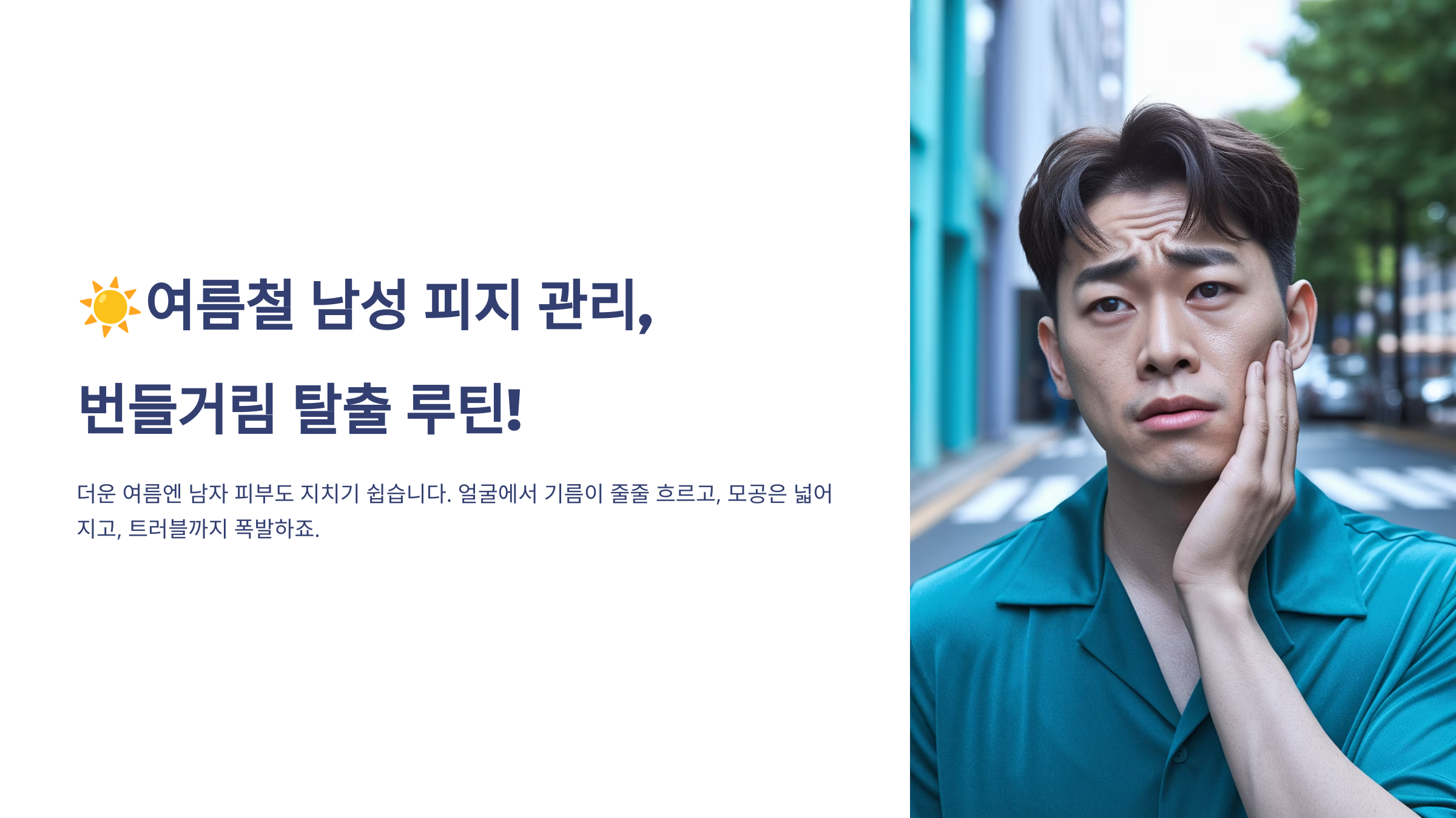 특히 남성 피부는 여성보다 피지선이 크고 활동이 활발하기 때문에 여름철 번들거림이 더 심하죠.