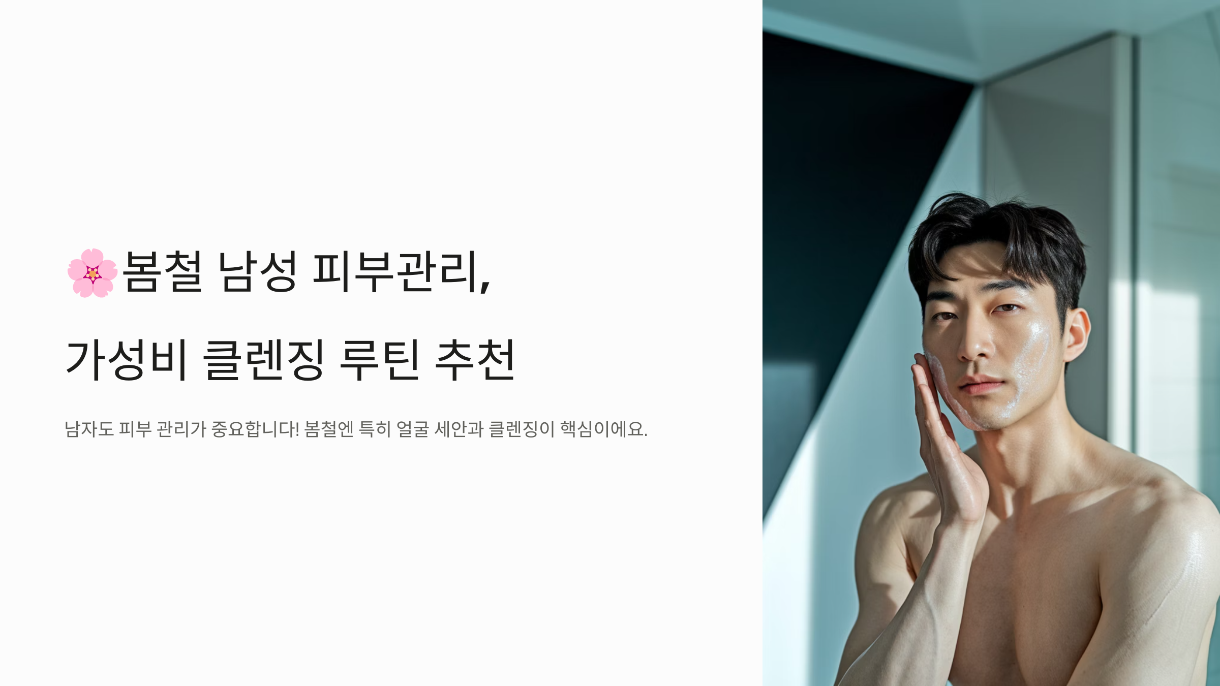 남자도 피부 관리가 중요합니다! 봄철엔 특히 얼굴 세안과 클렌징이 핵심이에요. 피부타입별 관리 루틴과 가성비 좋은 화장품, 클렌징 제품까지 한 번에 정리해드릴게요 😊