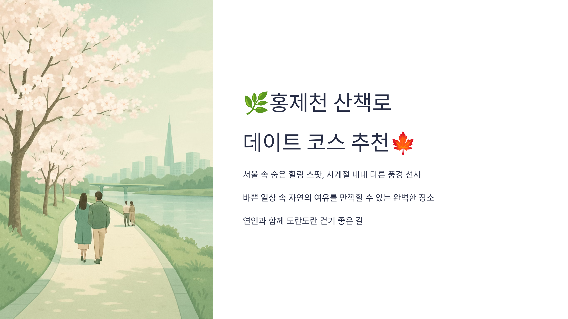 홍제천은 단순한 산책로를 넘어서, 정신적인 힐링을 주는 공간이에요.